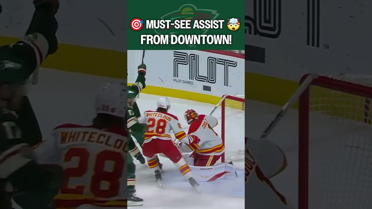 Jake Middleton sends a long-range lob pass to Vinnie Hinostroza, who catches it, settles it on his own stick, then scores to double the Minnesota Wild’s lead over the Calgary Flames to 2-0!