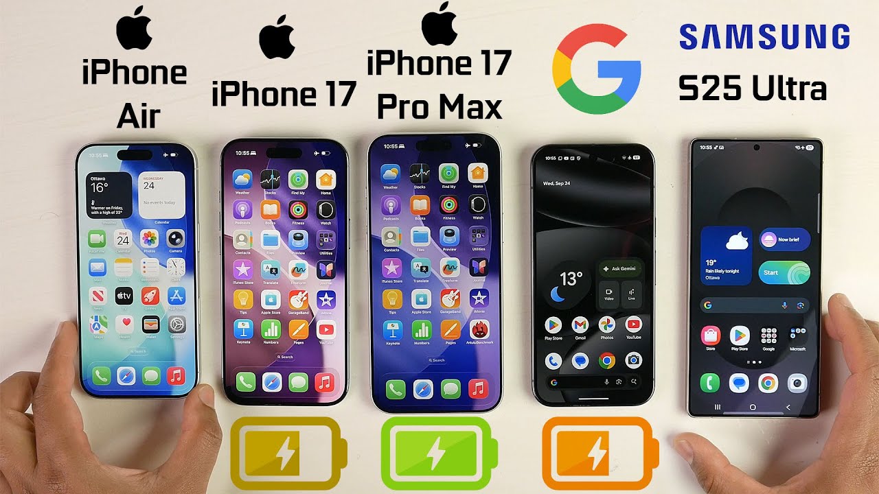 Here is our Battery life test on the iPhone 17 vs iPhone Air vs iPhone 17 Pro Max vs S25 Ultra vs Pixel 10 Pro.