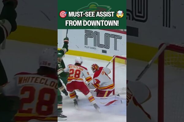 Jake Middleton sends a long-range lob pass to Vinnie Hinostroza, who catches it, settles it on his own stick, then