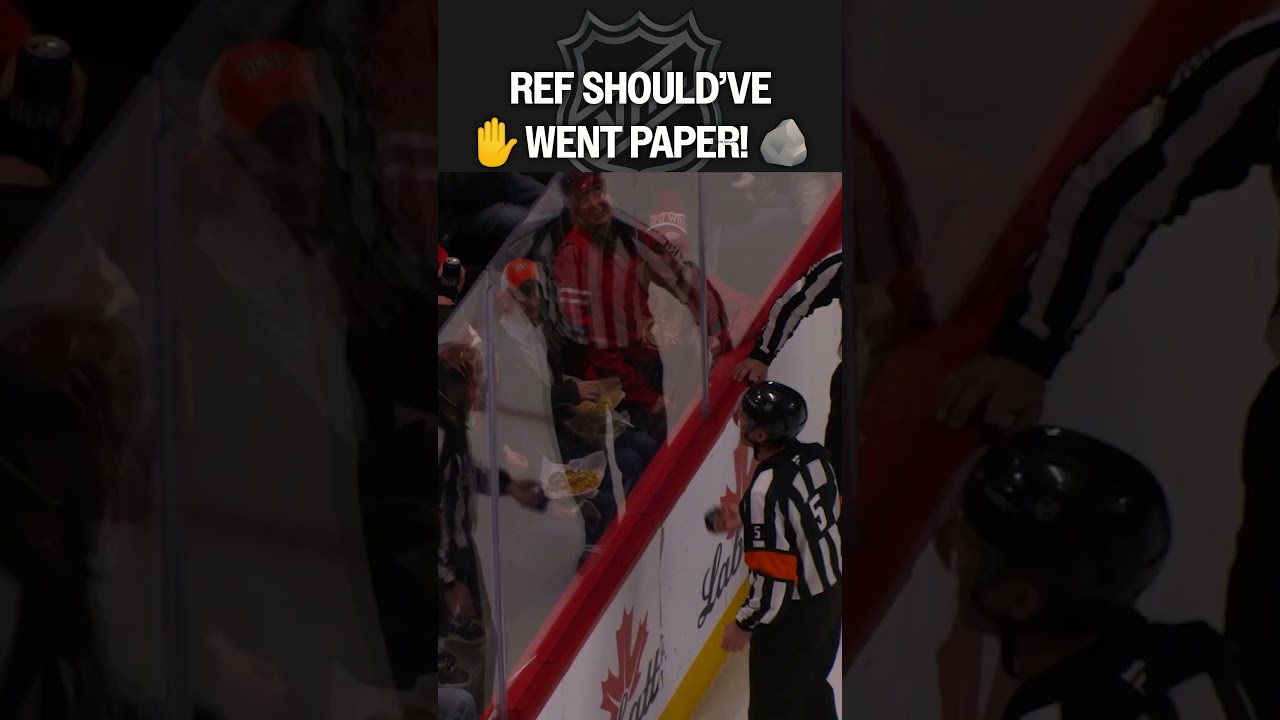 Ref plays rock paper scissors with a fan at the end of the second period and loses, then keeps his word and tosses the kid the puck.